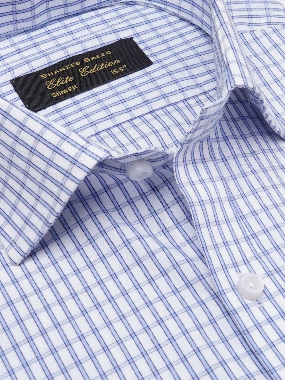 Blue & White Self Checkered, Elite Edition, Cutaway Collar Men’s Formal Shirt (FS-2328)