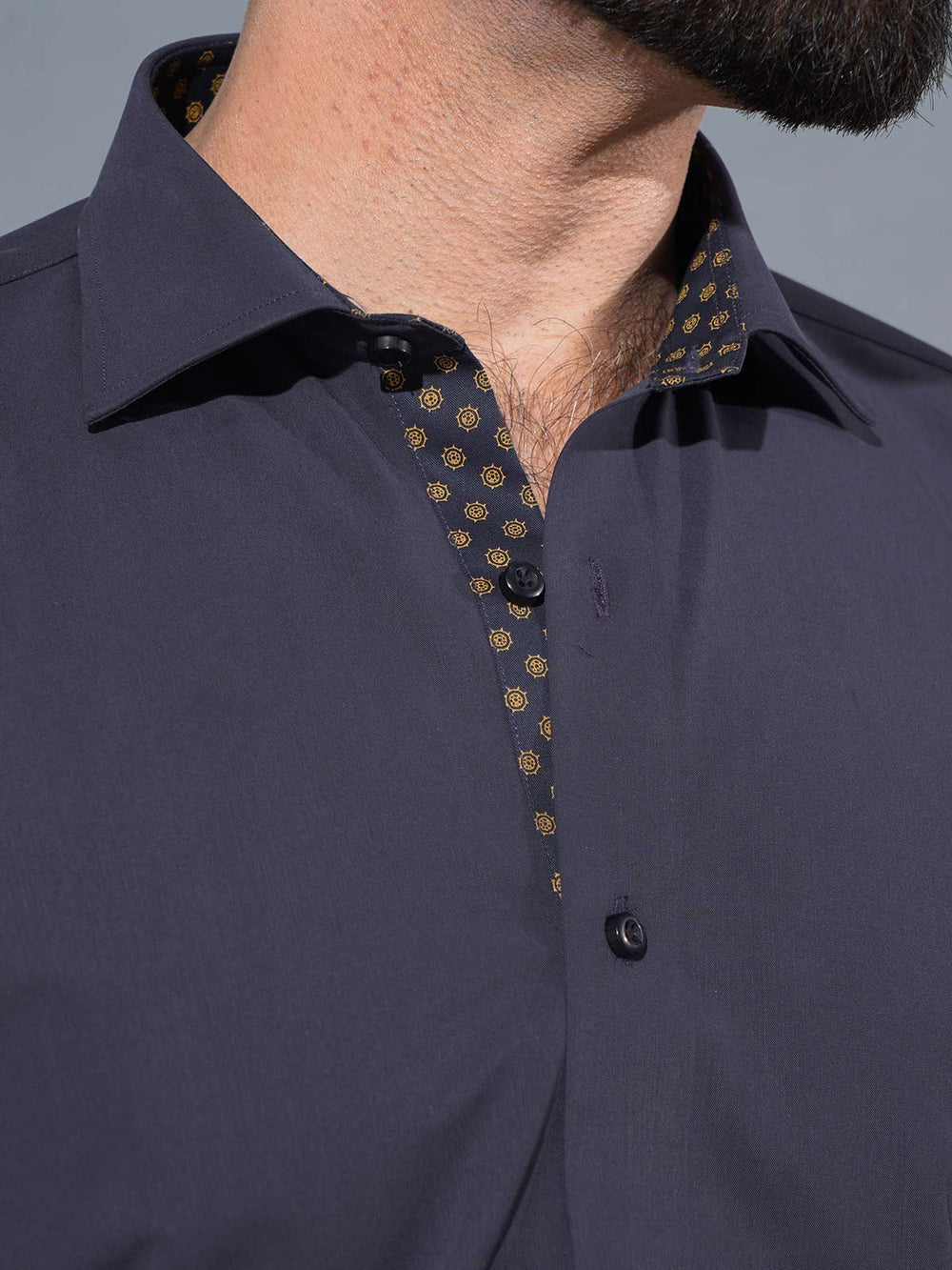 Navy Blue Plain, Elite Edition, Cutaway Collar Men’s Designer Formal Shirt (FS-2298)